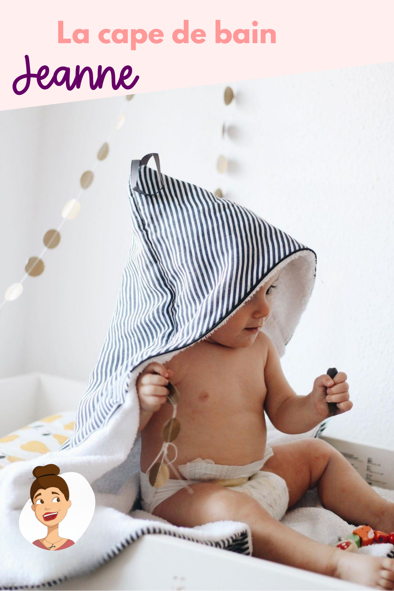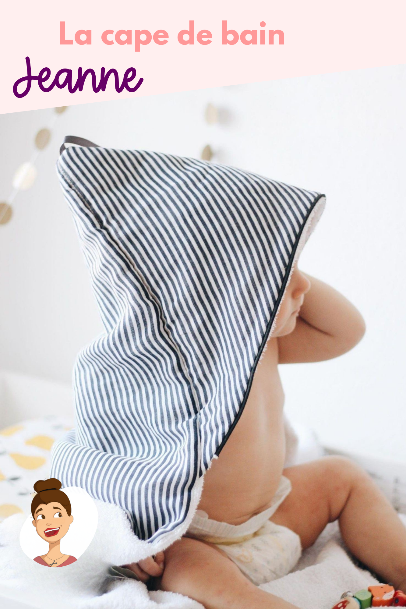 La cape de bain Jeanne est un projet rapide et facile à coudre. Elle sera un cadeau de naissance cousu main unique et indispensable. Elle permet de sécher confortablement bébé à la sortie du bain...