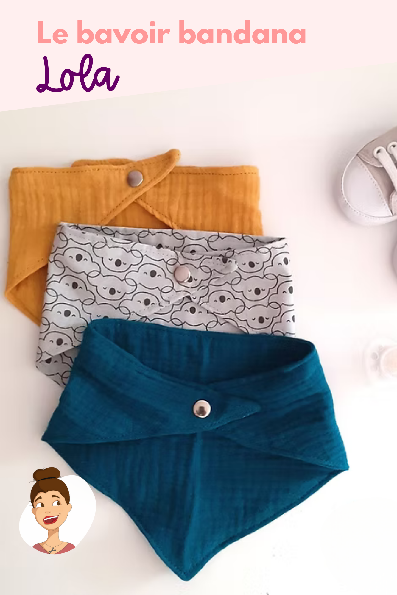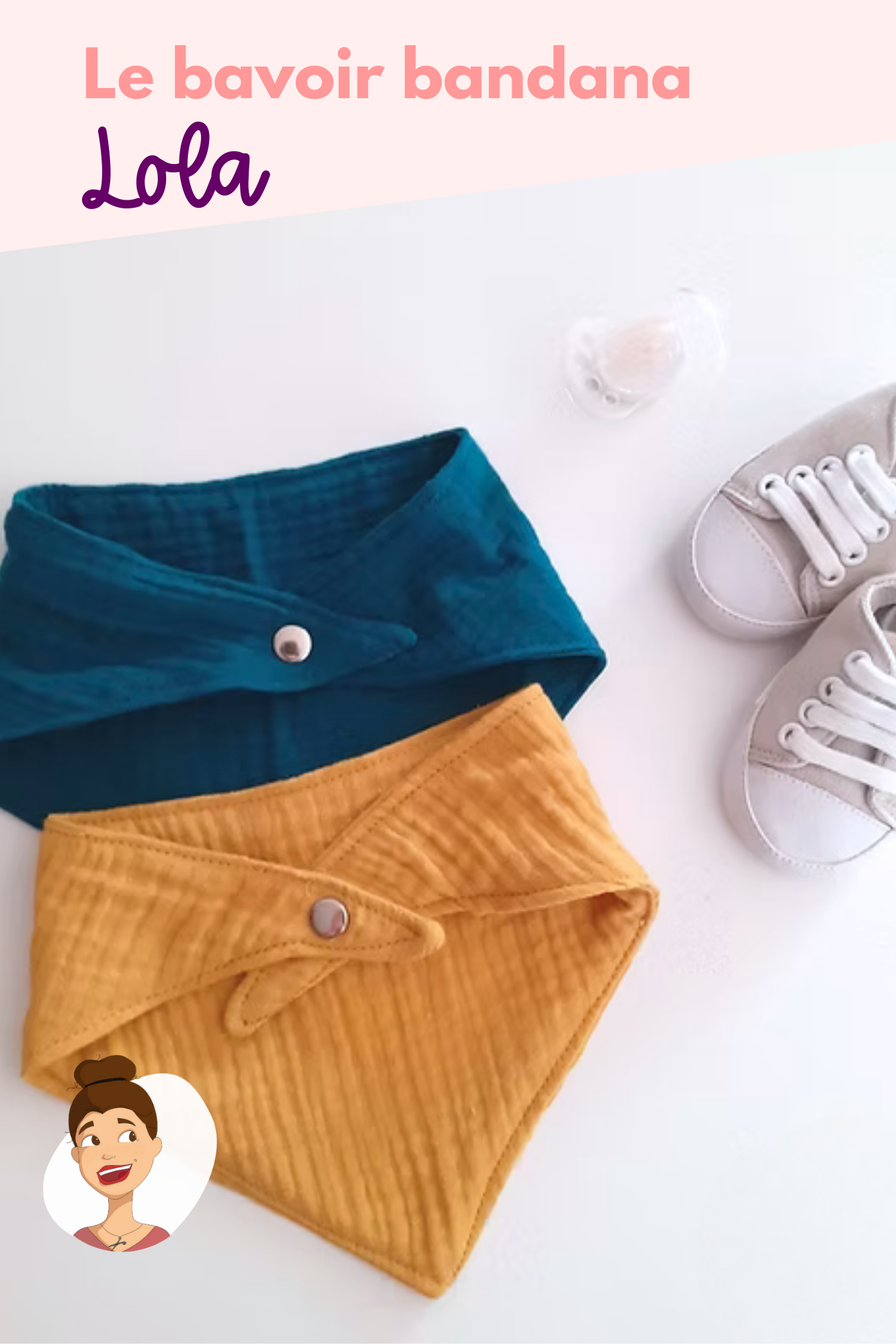 - Le patron du "bavoir bandana LOLA" en taille réelle (au format PDF) prêt à être imprimé. Le patron est très facile d'utilisation : aucune pièce ne se superpose, et l'utilisation de celui ci est détaillé dans le livret explicatif.